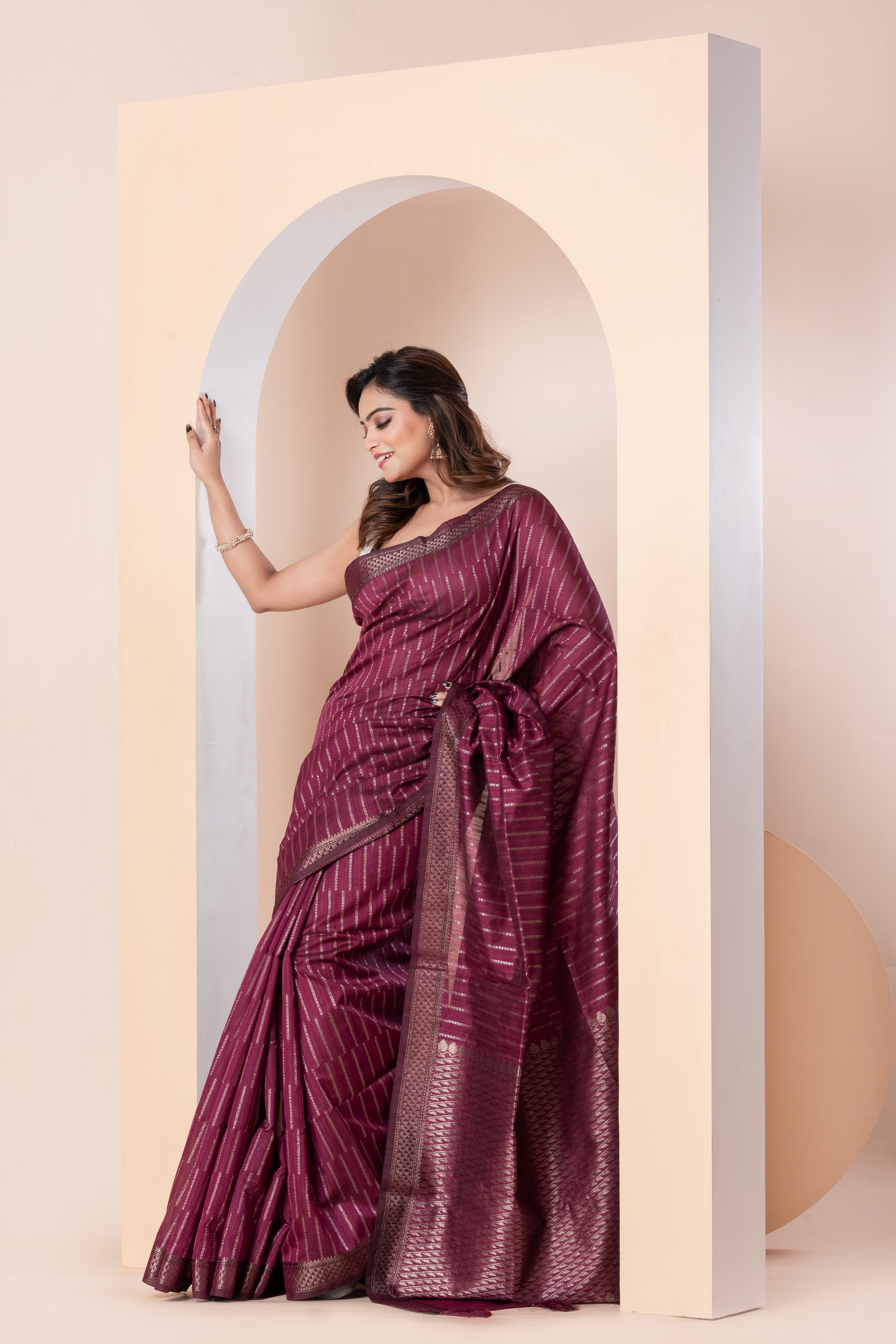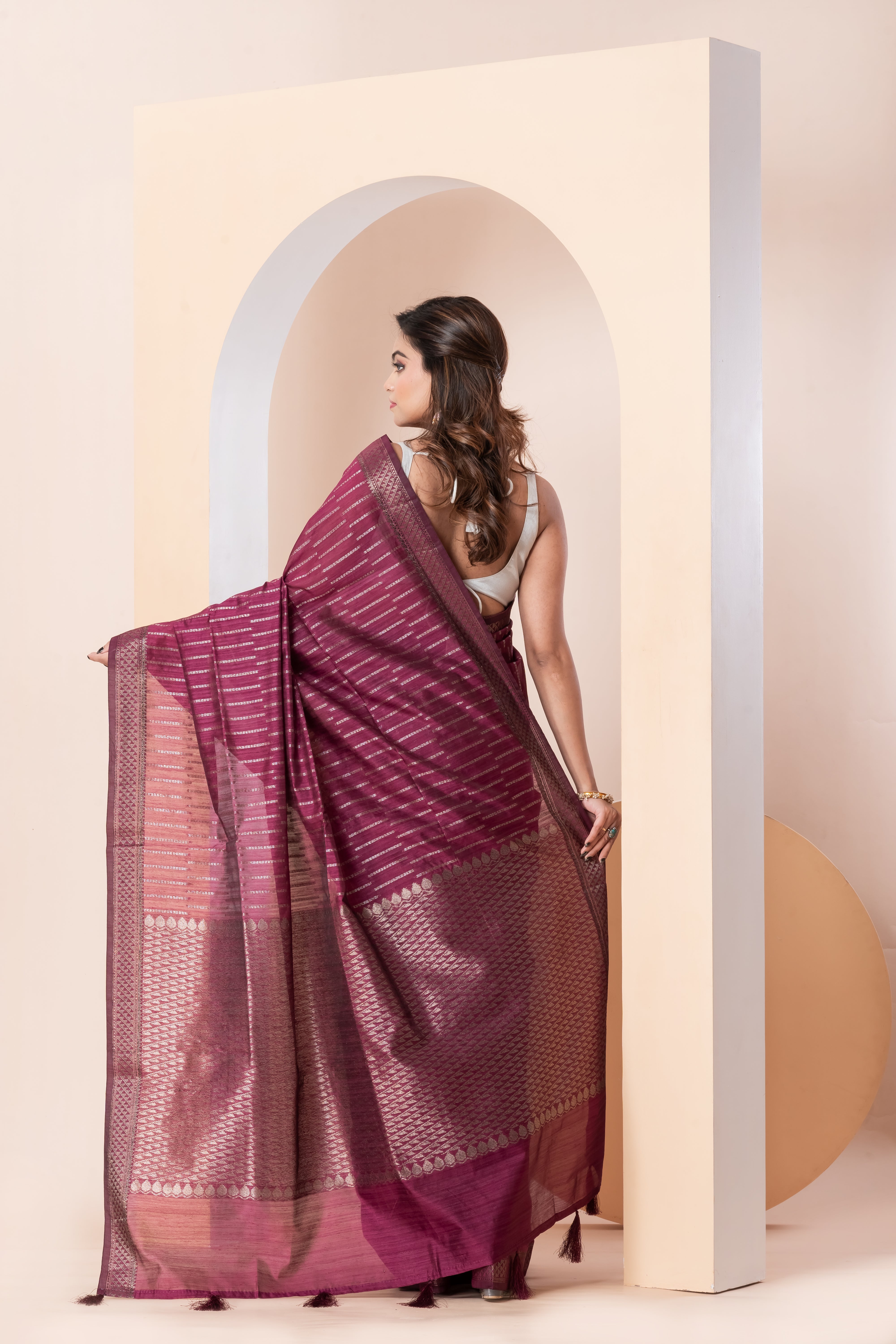 KAVVYA SOFT & LIGHT WEIGHT RANI HANDLOOM WEAVED SAREE WITH BEAUTIFUL BIG FLORAL MOTIFS ALL OVER THE SAREE. This gorgeous rani pink handloom saree features stunning big floral motifs woven throughout, creating an elegant and eye-catching traditional look perfect for festive occasions.