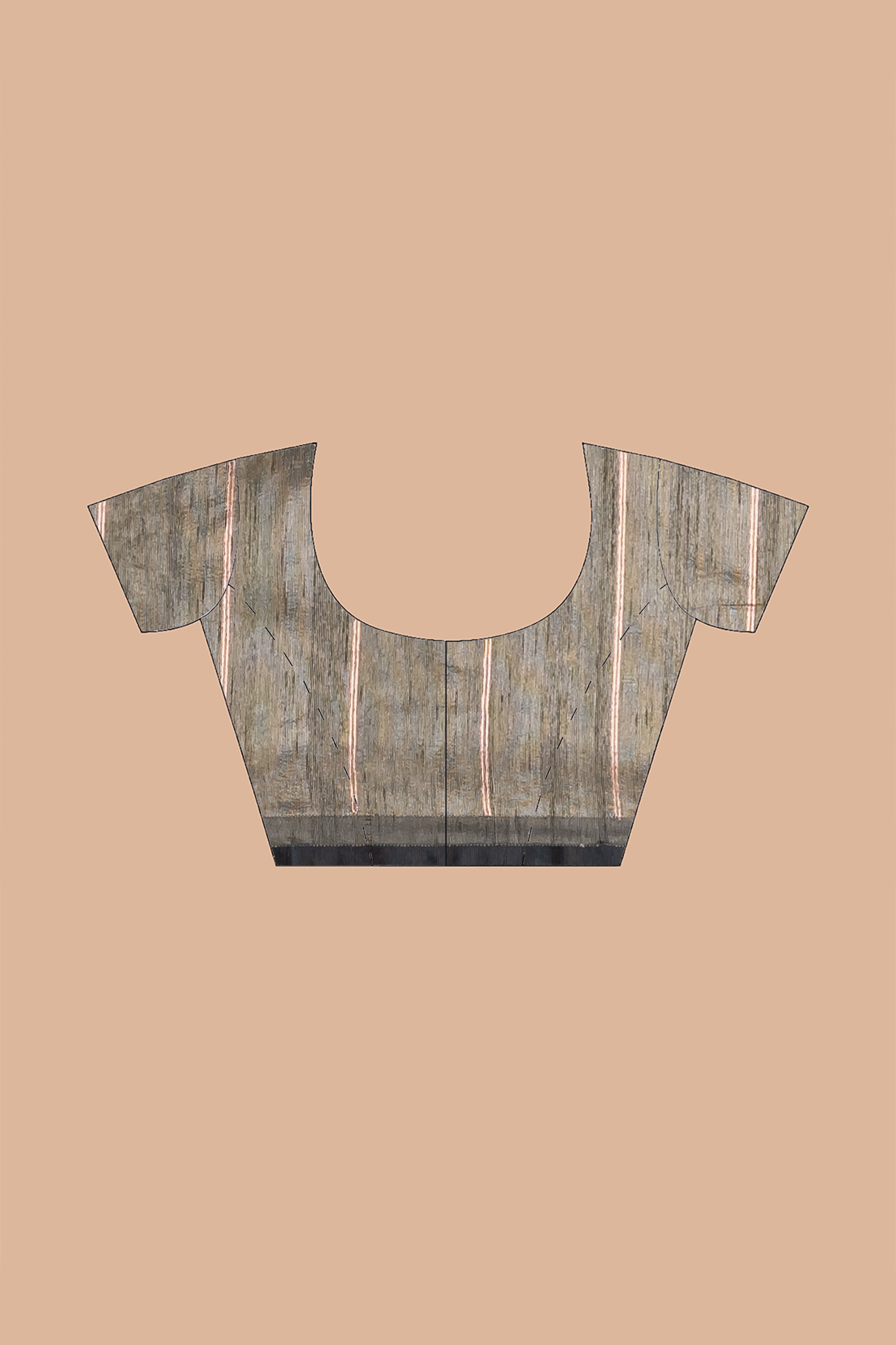KAVVYA SOFT & LIGHT WEIGHT BLACK HANDLOON TUSSAR SAREE WITH SMALL FLORAL MOTIFS IN THE SAREE COMES WITH CONTRAST COLOUR BORDER AND BLOUSE